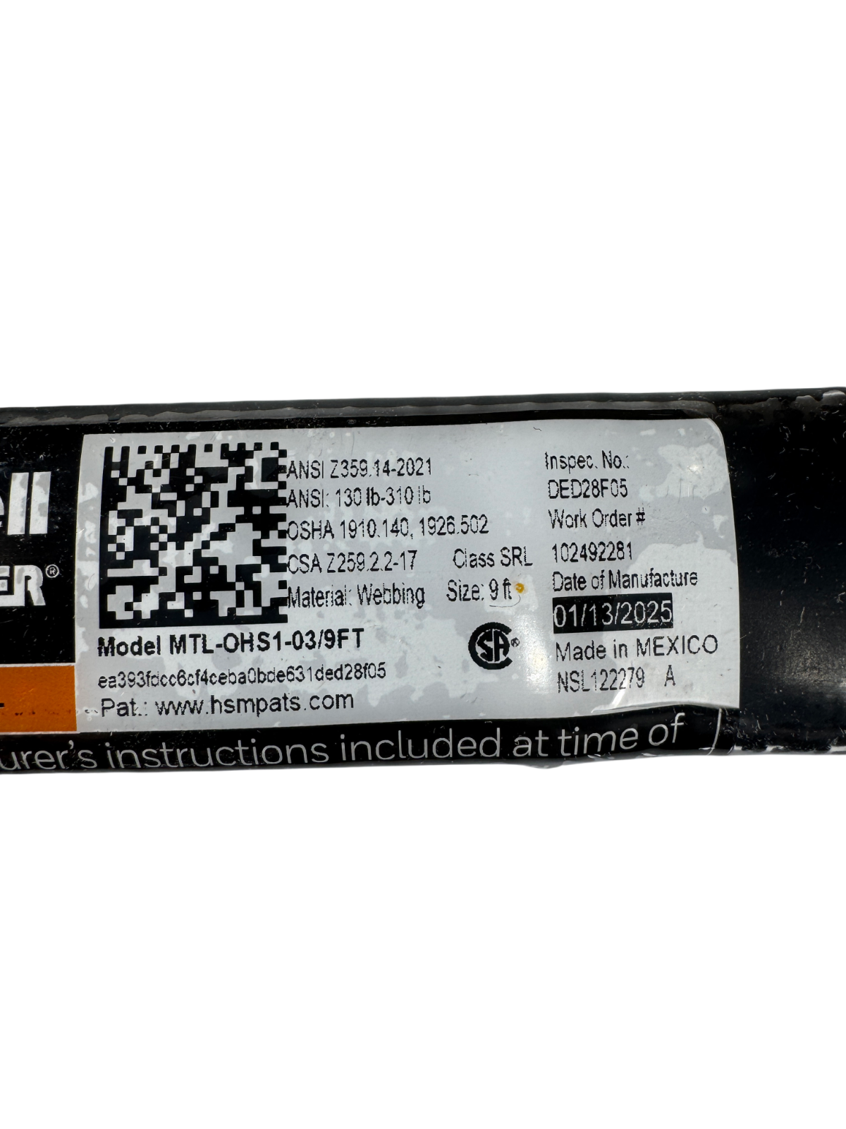 MILLER MTL-OHS1-03/9FT 420lb Capacity 9' Self-Retracting Fall Limiter