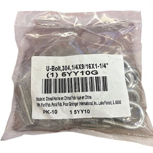Stainless Steel 1/4"-20 Standard U-Bolt with Mounting Plate (Pack of 10)